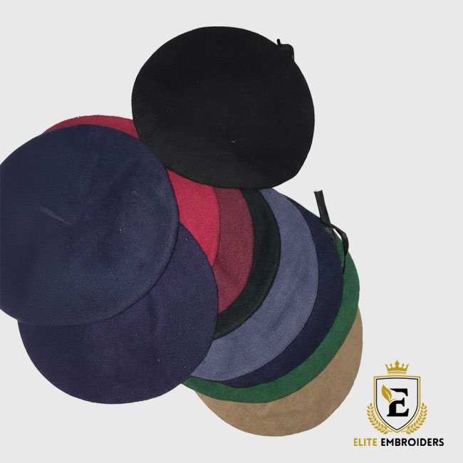 Discover the Elite Embroiders Multi-Color Wool Beret Caps Collection, crafted from high-quality wool blend fabric for comfort, durability, and timeless style. Available in a variety of elegant shades — including black, navy blue, maroon, red, green, beige, and grey — these berets are designed for both uniform and fashion use. The soft texture and classic round shape make them perfect for military, cadet, police, parade, or everyday casual wear.